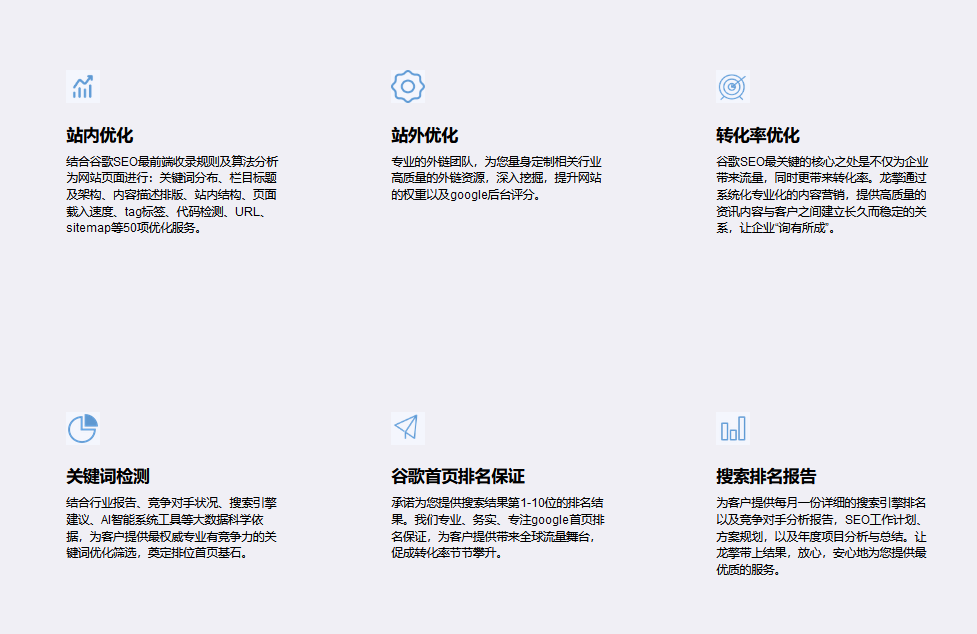 提升百度、搜狗、360、uc神马等搜索引擎的关键词排名,帮助企业更容易的获取用户流量,从而达与更理想的销售指标,为企业提升产品和创造价值提供最坚实的支撑。